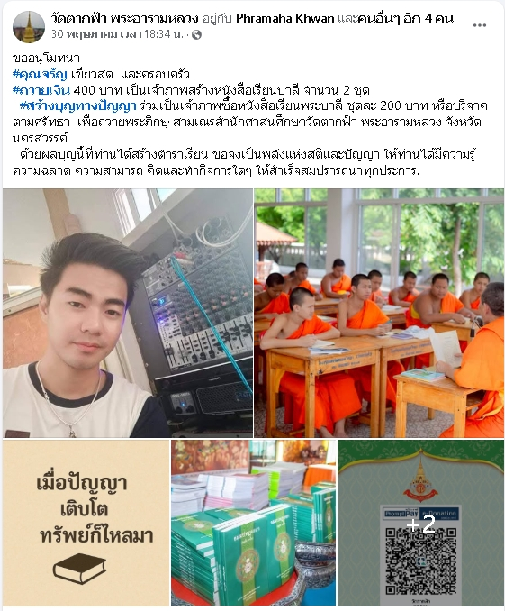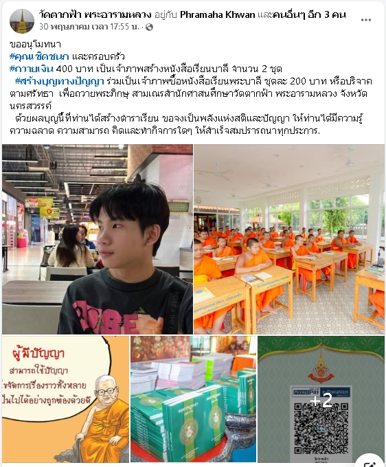 | ขออนุโมทนา คุณชวพล ขอนทอง ถวายเงิน 200 บาท เป็นเจ้าภาพสร้างหนังสือบาลี จำนวน 1 ชุด เพื่อถวายพระภิกษุ-สามเณรวัดตากฟ้า พระอารามหลวง | ||