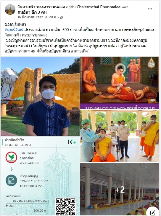 | ขออนุโมทนา คุณนิวัฒน์ สระทองล้อม ถวายเงิน 500 บาท เพื่อเป็นค่ารักษาพยาบาลพระภิกษุสามเณรวัดตากฟ้า พระอารามหลวง | ||