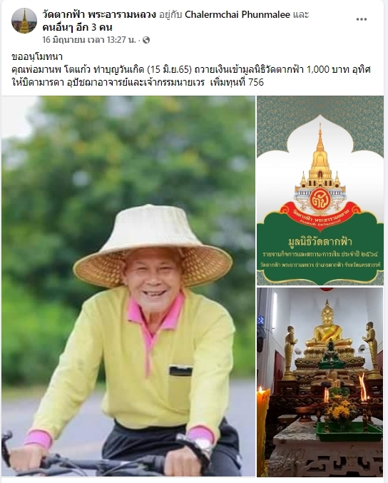 | ขออนุโมทนา นายมานพ โตแก้ว และครอบครัว ทำบุญวันเกิด ถวายเินเข้ามูลนิธิวัดตากฟ้า 1,000 บาท | ||