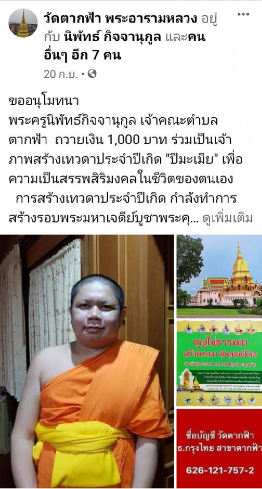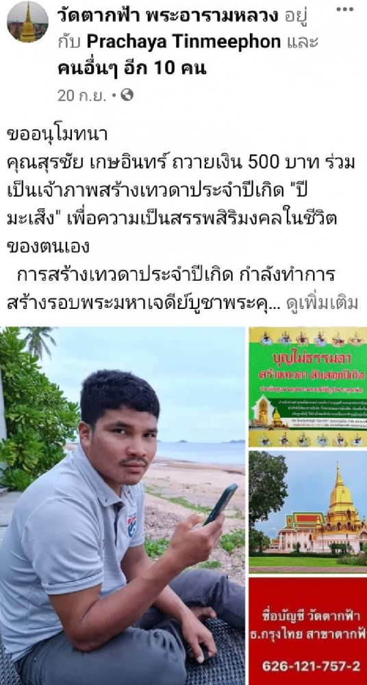 นายธนภัทร เกียรตินฤปการ ถวายเงิน 200 บาท ร่วมเป็น #เจ้าภาพสร้างเทวดาประจำปีเกิด (สร้างเทวดาปีมะโรง) เพื่อความเป็นสรรพสิริมงคลในชีวิตของตนเอง | ||